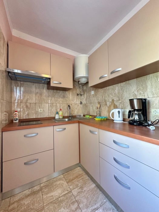 Apartment nr. 2 befindet sich im zweiten Stock und hat eine Gesamtfläche von 40 Quadratmetern. Das Apartment bietet eine ideale Unterkunft für 2 Personen. Es besteht die Möglichkeit, einen Erwachsenen auf einem Schlafsofa im Wohnzimmer unterzubringen. Die Küche ist mit einem Elektroherd, einem Kühlschrank, einer Filterkaffeemaschine, einen Wasserkocher und allen notwendigen Küchenutensilien ausgestattet. Das Wohnzimmer hat direkten Zugang zur Terrasse mit seitlichem Meerblick. Das Rauchen ist nur außerhalb der Wohnung auf der Terrasse / dem Balkon gestattet.