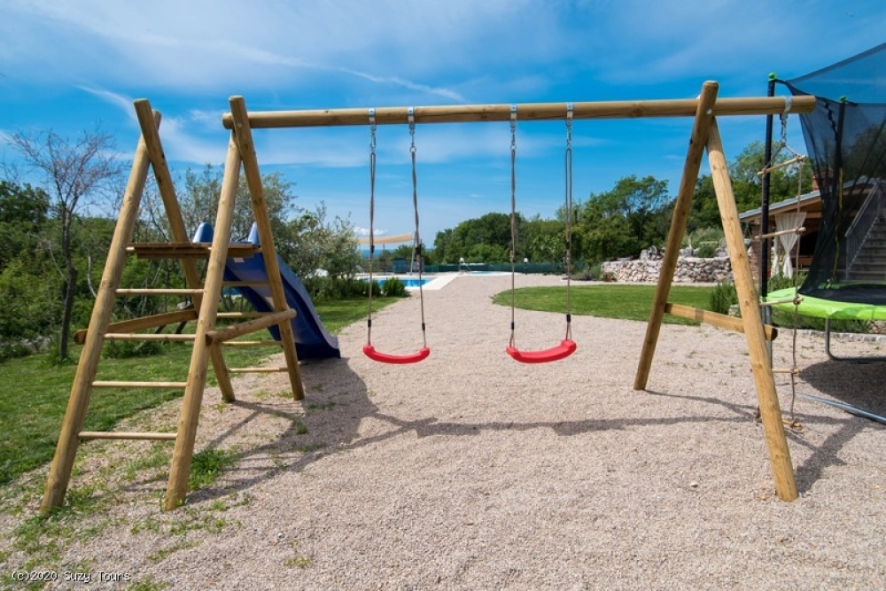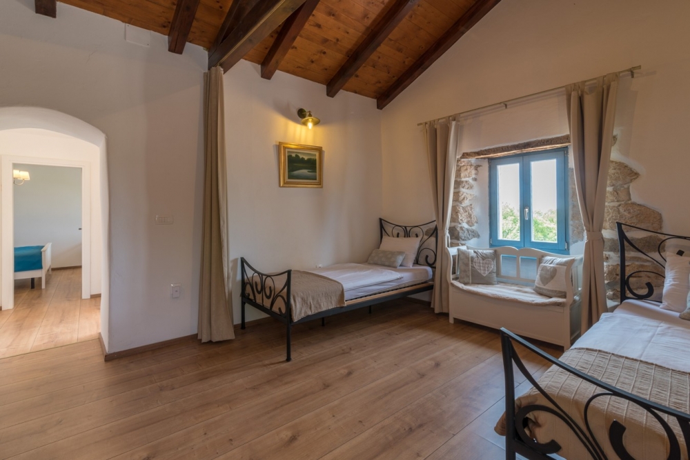 Villa può ospitare fino a 8 ospiti, perfetto per un massimo di due famiglie. Servizi: piscina, idromassaggio, sauna, parco giochi per bambini e terrazza coperta con barbecue, tavolo e sedie per tutti gli ospiti. Villa composta da due unità con giardino; casa principale e piccola casa Musuna. La casa completamente ristrutturata offre 3 camere da letto con bagno privato, una cucina nella parte inferiore della casa e un soggiorno con camino aperto vecchio stile, al primo piano. Due divani pieghevoli adatto come letti aggiuntivi per gruppi più grandi. Una delle 3 camere si trova in una parte separata Musuna, con la propria cucina e bagno privato.