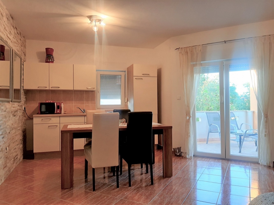 La casa si trova nel tranquillo villaggio di Sveti Anton, 1.5 km di distanza dal centro di Malinska e spiagge. L'appartamento è situato in un edificio residenziale, al primo piano ed è composto da una camera da letto, bagno con doccia e lavatrice. Il soggiorno ha un divano letto per 2 persone (140cm x 190 cm). La cucina è dotata di un piano cottura, frigorifero, macchina per il caffè, microonde e tutti gli utensili necessari. Il balkone è attrezzato con tavolo e sedie. Il fumo è consentito solo al di fuori l'appartamento, sulla terrazza/balcone.