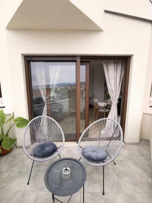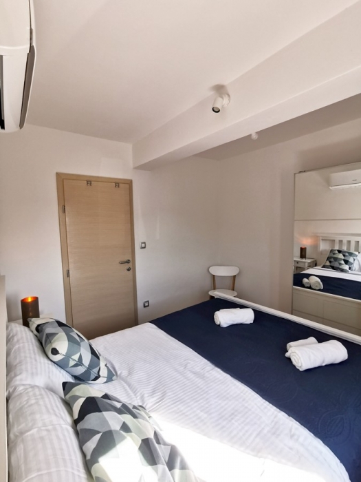 L'appartamento è situato al primo piano è composto da due ampie camere doppie e dal soggiorno con divano letto che si apre facilmente in un letto di dimensioni 130 cm x 190 cm. La cucina è attrezzata con lavastoviglie, fornello elettrico, frigorifero, macchina per il caffè con filtro e tutte le stoviglie necessarie. Il bagno è composto da cabina doccia, lavabo e lavatrice.