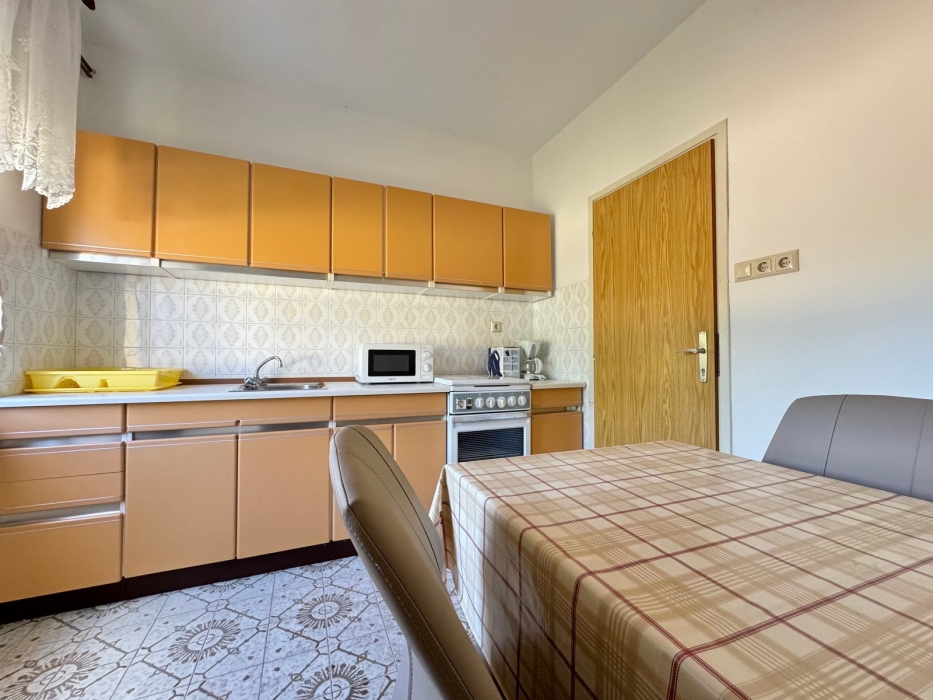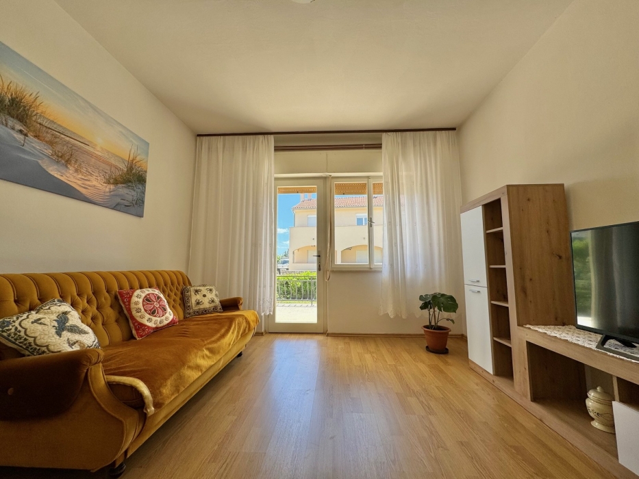 L'appartamento 4 è situato al piano terra e può ospitare fino a 4 persone. L'appartamento è composto da una, due camere doppie e un soggiorno. La cucina è completamente attrezzata con tutti gli elettrodomestici da cucina necessari. Dal soggiorno si accede direttamente alla terrazza arredata e attrezzata con tavolo e sedie.