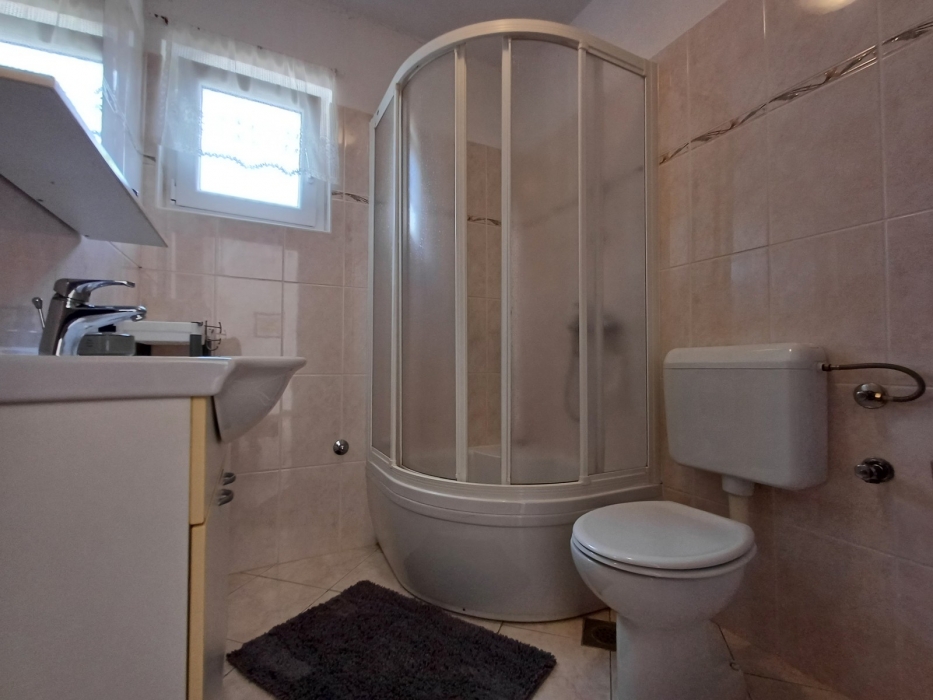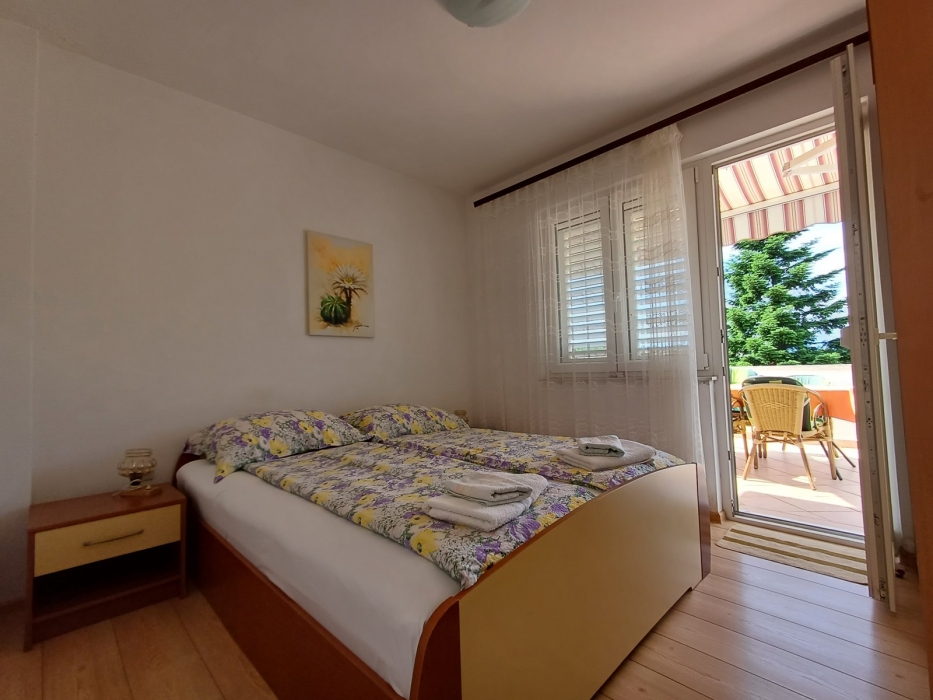 L'appartamento 4 è situato al primo piano e con una superficie totale di 60 metri quadrati, l'appartamento offre una sistemazione ideale per un massimo di 4 persone. L'appartamento è composto da due camere da letto con letti matrimoniale e cucina è attrezzata con fornello elettrico, frigorifero, macchina per il caffè con filtro, bollitore elettrico e tutte le stoviglie necessarie. Dalle camere da letto è possibile accedere direttamente al terrazzo con un'incantevole vista sul mare.